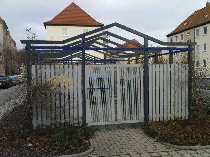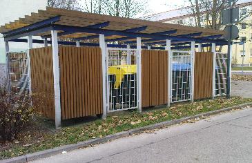Müllhäuschen, wie sie in und um München sehr beliebt sind, hier in Stahl verzinkt/Aluminium pulverbeschichtet